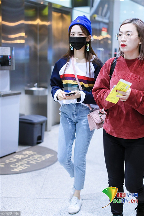 2018年9月25日,北京,“錦鯉少女”楊超越現(xiàn)身機(jī)場,她身穿“彩虹裝”青春無敵,戴著糖果色耳環(huán),細(xì)節(jié)處可愛吸睛。