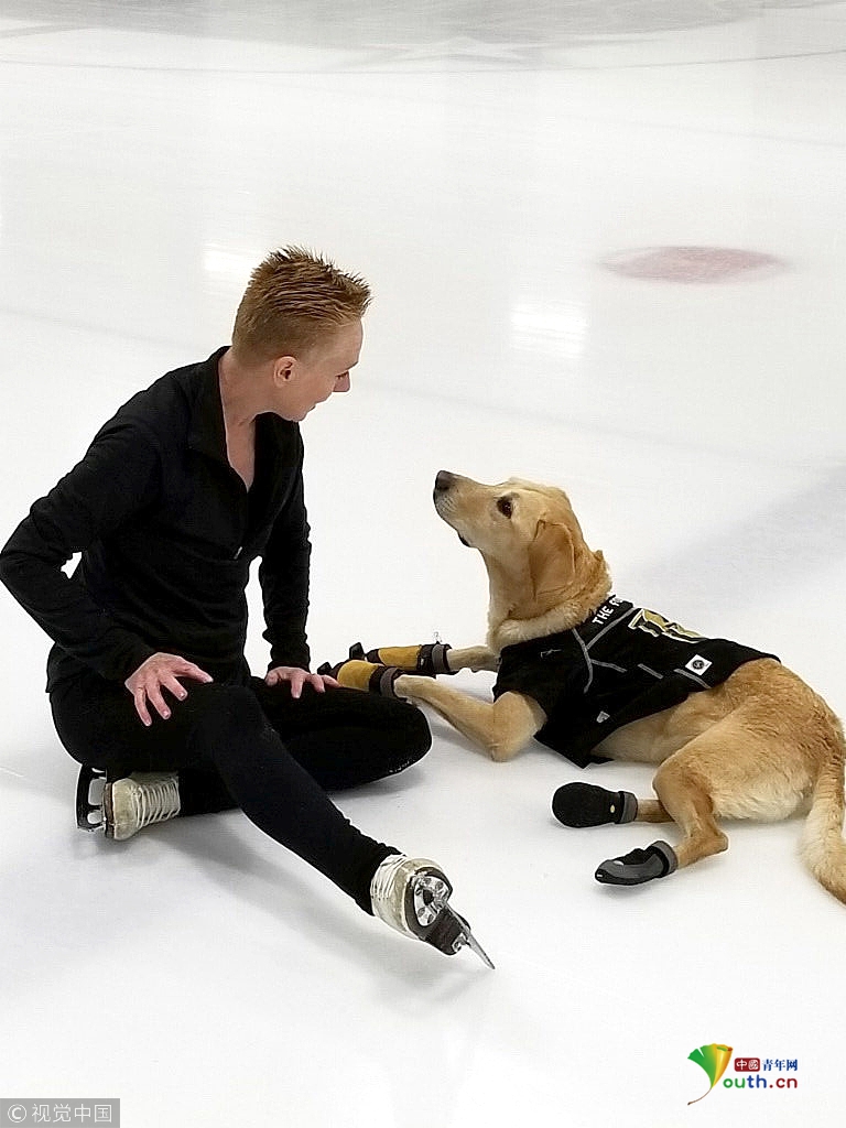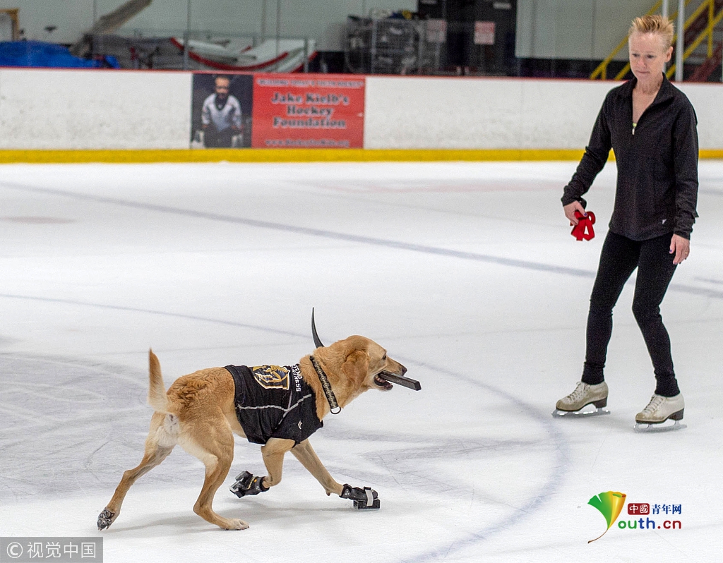 如今五歲的本尼學(xué)習(xí)滑冰已有一年,每周兩次在拉斯維加斯冰上中心接受主人的訓(xùn)練,學(xué)習(xí)一系列包括轉(zhuǎn)彎、交叉、兔子跳等動作技巧。
