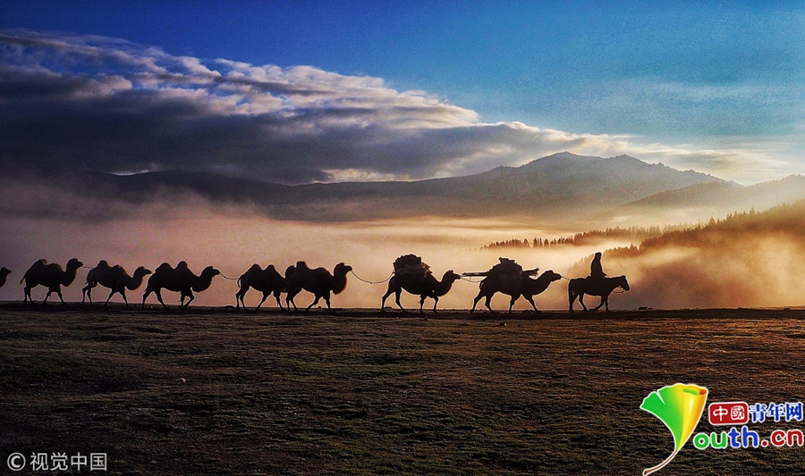 天氣逐漸變冷,哈薩克族牧民浩浩蕩蕩向秋牧場(chǎng)遷徙。