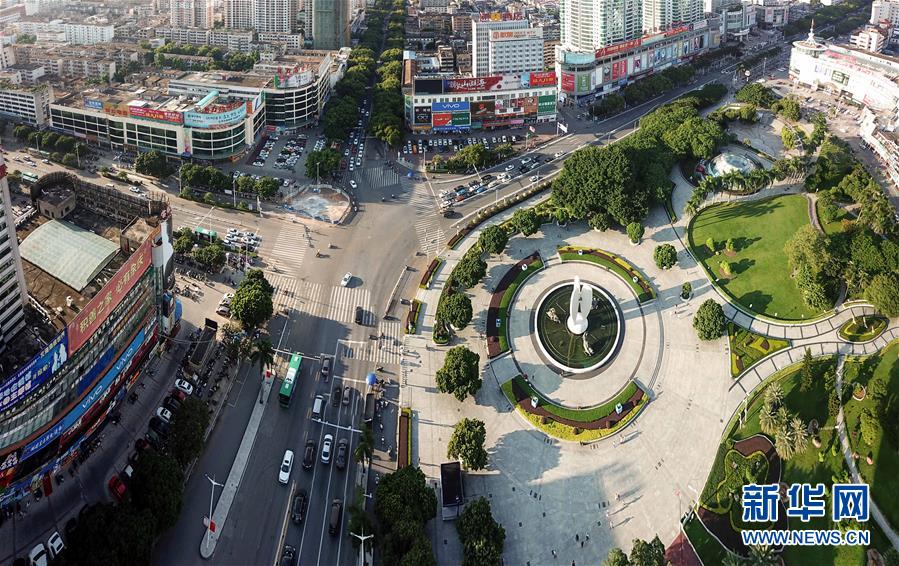 這是廣西北海市北海大道和北京路交匯處街景(9月27日無(wú)人機(jī)拍攝)。