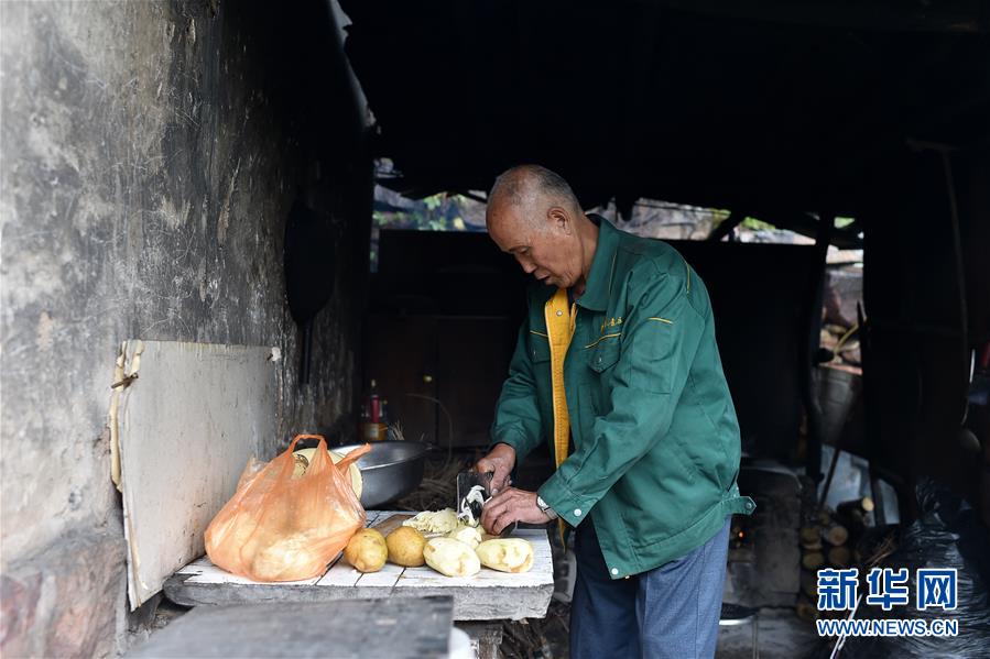 在黃崖洞烈士陵園,趙乃堂在做午飯(9月18日攝)。 新華社記者 詹彥 攝