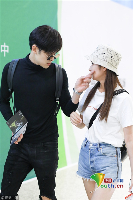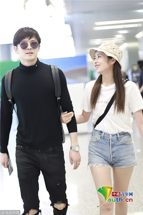 2018年9月26日,上海,穎兒、付辛博夫婦亮相機場。穎兒身穿白T恤和牛仔短褲露出纖細(xì)美腿十分養(yǎng)眼,一路挽著老公的手十分恩愛甜蜜,日前,穎兒還在節(jié)目上痛哭述說自己與付辛博新婚相處的苦楚。
