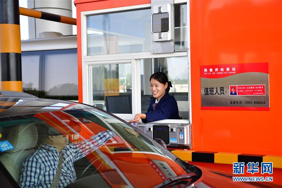 9月28日,車輛通過河南省南樂縣的南(樂)林(州)高速豫魯界收費站。新華社記者 馮大鵬 攝