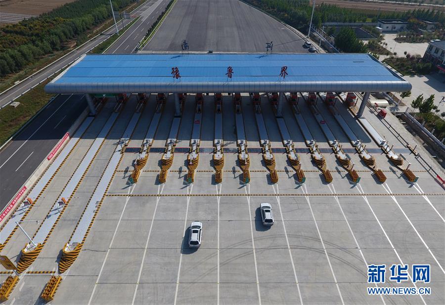 9月28日,車輛通過山東省莘縣的莘(縣)南(樂)高速魯豫界收費站。新華社記者 馮大鵬 攝