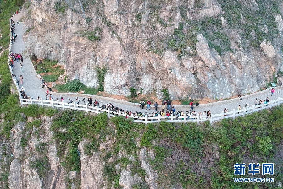游客在霞浦縣北岐攝影點參觀(9月28日無人機拍攝)。 近年來,福建省霞浦縣以“創(chuàng)建福建旅游強縣”和“發(fā)展全域旅游”為目標,在進一步推動攝影旅游大發(fā)展的同時,還大力發(fā)展民宿等特色旅游產(chǎn)業(yè)。2017年全縣共接待游客333.7萬人次,旅游總收入25億元。 新華社記者 林善傳 攝