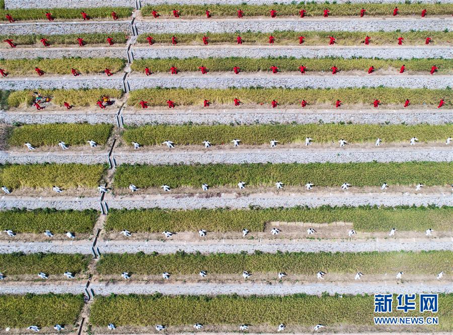 9月29日,太極拳愛好者在建德市大洋鎮(zhèn)高垣村的千畝梯田上進(jìn)行表演(無人機(jī)拍攝)。當(dāng)日,2000多名太極拳愛好者在浙江省建德市大洋鎮(zhèn)高垣村的千畝梯田上參加太極拳表演,吸引很多當(dāng)?shù)厝撕陀慰颓皝碛^賞,助力當(dāng)?shù)亟鹎飼r(shí)節(jié)鄉(xiāng)村旅游。近兩年來,大洋鎮(zhèn)充分利用土地整治后形成的千畝梯田打造農(nóng)業(yè)觀光綜合體,發(fā)展綜合型農(nóng)業(yè)觀光旅游,為鄉(xiāng)村振興注入新活力。新華社記者徐昱攝