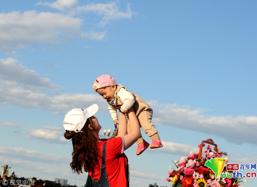 北京迎來高顏值好天氣 游客紛紛在天安門廣場拍照留影
