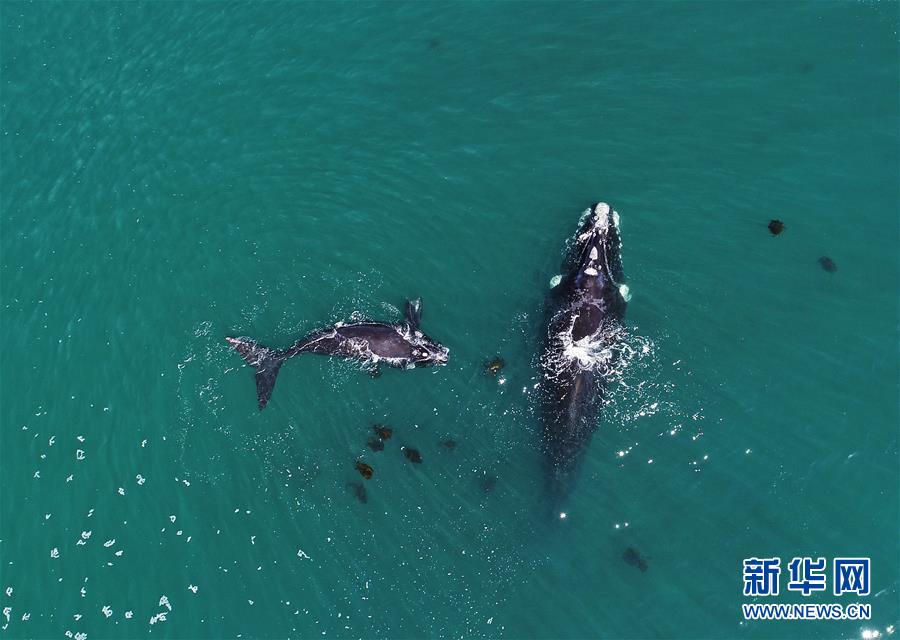 9月30日,在南非赫曼紐斯小鎮(zhèn)附近海面上,南露脊鯨在海岸邊暢游。9月29日,位于開普敦以東約115公里的赫曼紐斯小鎮(zhèn)迎來(lái)2018年的鯨魚節(jié),來(lái)自世界各地的游客可乘船出海觀鯨,也可在岸邊等待鯨魚的到來(lái)。新華社記者陳誠(chéng)攝