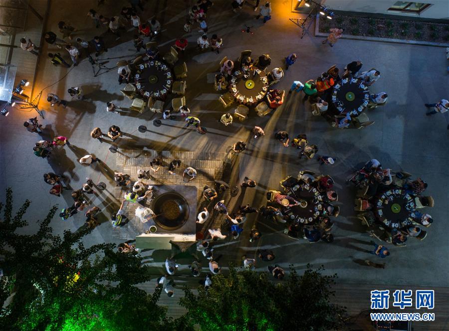 9月30日,中外游客入席品嘗“江鮮第一鍋”(無人機(jī)拍攝)。當(dāng)日,浙江省杭州市富陽區(qū)場口鎮(zhèn)東梓關(guān)村開啟“江鮮第一鍋”,幾位大廚聯(lián)手在直徑1.5米的大鍋內(nèi)烹制美味江鮮,這也是當(dāng)?shù)亍敖r大會(huì)”的重頭戲。東梓關(guān)村有著1000多年歷史,古就是富春江南岸重要的商貿(mào)集散地,素有富春江“東流第一關(guān)”之稱。隨著近年來美麗鄉(xiāng)村建設(shè)的推進(jìn),東梓關(guān)村著力打造粉墻黛瓦的江南民居,同時(shí)依托富春江豐富的江鮮魚類資源,在秋季舉辦特色“江鮮大會(huì)”,通過江鮮捕撈體驗(yàn)、江鮮第一鍋、百鮮宴、農(nóng)家菜大賽等活動(dòng),吸引各地游客前來感受富春江漁民豐收的喜悅和千年古村的獨(dú)特魅力,推動(dòng)鄉(xiāng)村特色旅游發(fā)展。新華社記者徐昱攝