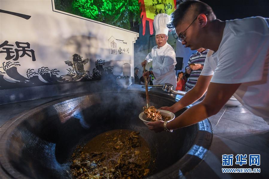 9月30日,廚師舀出一碗“江鮮第一鍋”美食。當(dāng)日,浙江省杭州市富陽區(qū)場口鎮(zhèn)東梓關(guān)村開啟“江鮮第一鍋”,幾位大廚聯(lián)手在直徑1.5米的大鍋內(nèi)烹制美味江鮮,這也是當(dāng)?shù)亍敖r大會”的重頭戲。東梓關(guān)村有著1000多年歷史,古就是富春江南岸重要的商貿(mào)集散地,素有富春江“東流第一關(guān)”之稱。隨著近年來美麗鄉(xiāng)村建設(shè)的推進,東梓關(guān)村著力打造粉墻黛瓦的江南民居,同時依托富春江豐富的江鮮魚類資源,在秋季舉辦特色“江鮮大會”,通過江鮮捕撈體驗、江鮮第一鍋、百鮮宴、農(nóng)家菜大賽等活動,吸引各地游客前來感受富春江漁民豐收的喜悅和千年古村的獨特魅力,推動鄉(xiāng)村特色旅游發(fā)展。新華社記者徐昱攝