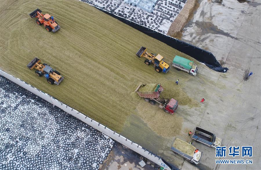 10月8日,工人駕駛機械設備在青貯飼料場作業(yè)(無人機拍攝)。 近年來,河北省故城縣結(jié)合市場需求,通過“龍頭企業(yè)+基地+農(nóng)戶”的經(jīng)營模式,鼓勵引導農(nóng)民發(fā)展訂單式青貯玉米種植,不僅增加了種植戶收入,而且為養(yǎng)殖企業(yè)提供了優(yōu)質(zhì)飼料。目前,故城縣已發(fā)展青貯玉米種植面積6萬余畝。 新華社記者 朱旭東 攝