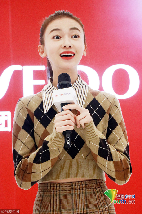 2018年10月8日,上海,吳謹言出席某活動。她穿學院風套裝,高梳馬尾嫩似小學妹,熱聊粉絲甜笑比心少女范十足 。