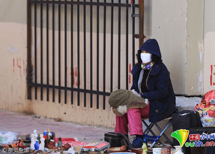 2018年10月7日,黑龍江省哈爾濱市,清晨,哈市溫度僅有5℃,在道外靖宇街,出地攤的人和逛攤的市民,紛紛穿上羽絨服與棉服御寒。