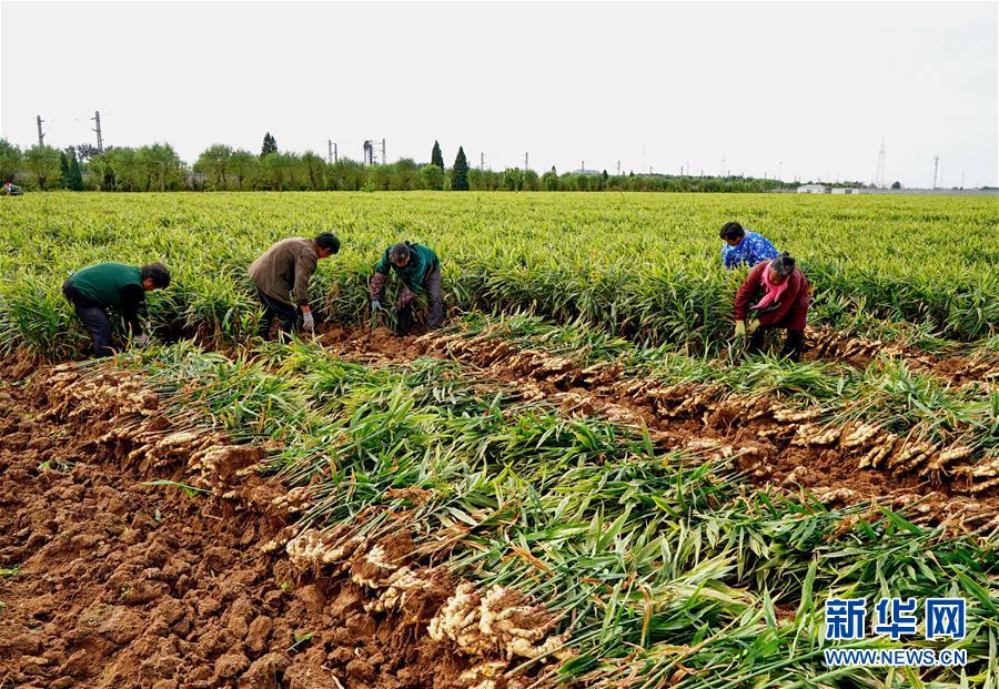 10月9日,秦皇島市撫寧區(qū)留守營鎮(zhèn)桑園村農(nóng)民在收獲生姜。 近年來,河北省秦皇島市撫寧區(qū)在農(nóng)業(yè)結(jié)構(gòu)調(diào)整過程中,引導(dǎo)當(dāng)?shù)剞r(nóng)民種植優(yōu)質(zhì)無公害生姜,并安排農(nóng)業(yè)技術(shù)員定期到田間指導(dǎo)農(nóng)民對生姜進行標準化管理。據(jù)介紹,今年該縣生姜種植面積1萬多畝,預(yù)計產(chǎn)生姜5萬噸,種植戶每畝純收入達1萬多元。 新華社記者 楊世堯 攝