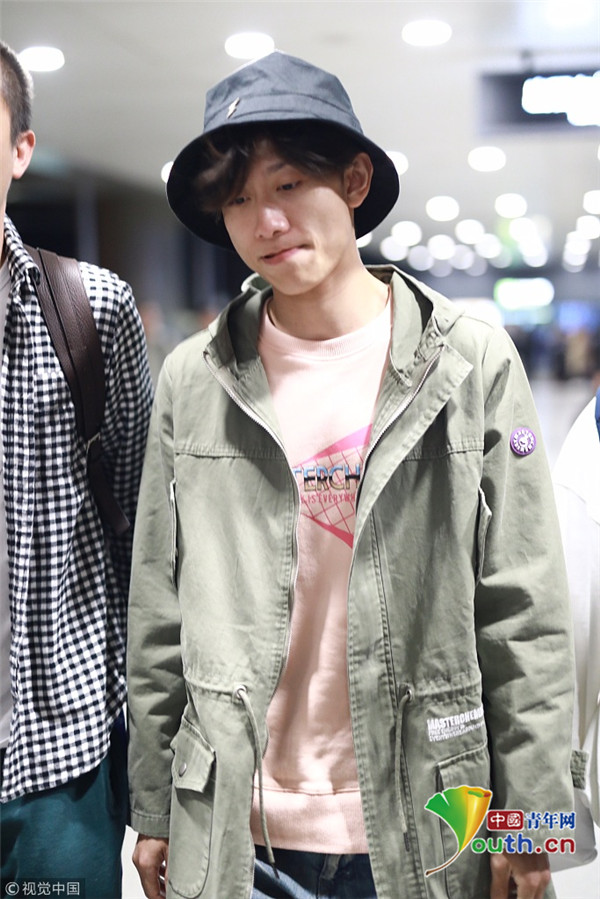 2018年10月14日,上海,張一山抵達(dá)上海機(jī)場(chǎng)。張一山戴漁夫帽眼袋嚴(yán)重瞬間老十歲, 用手擋臉?biāo)撇辉干乡R。