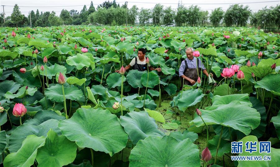 6月3日,荷農(nóng)們在荷花基地里挑選準備出售的觀賞性荷花。新華社記者 徐昱 攝