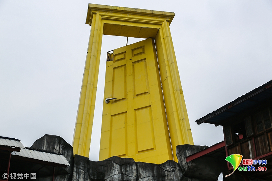 這扇金色大門(mén)位于房屋頂部,高約8米,只有門(mén)框和門(mén),半開(kāi)著的大門(mén),帶著一絲神秘色彩,因而被民眾戲稱(chēng)為“上帝之門(mén)”。