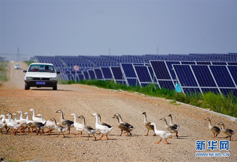 這是內(nèi)蒙古鄂爾多斯市杭錦旗庫(kù)布其沙漠生態(tài)太陽能光伏光熱治沙發(fā)電綜合示范地(8月1日攝)。“板上發(fā)電、板下種草、板間養(yǎng)殖”,目前該太陽能發(fā)電項(xiàng)目治沙面積達(dá)到了13.3平方公里,每年發(fā)電5億千瓦時(shí),實(shí)現(xiàn)銷售收入4.5億元。其社會(huì)效益、生態(tài)效益、民生效益、經(jīng)濟(jì)效益十分顯著。