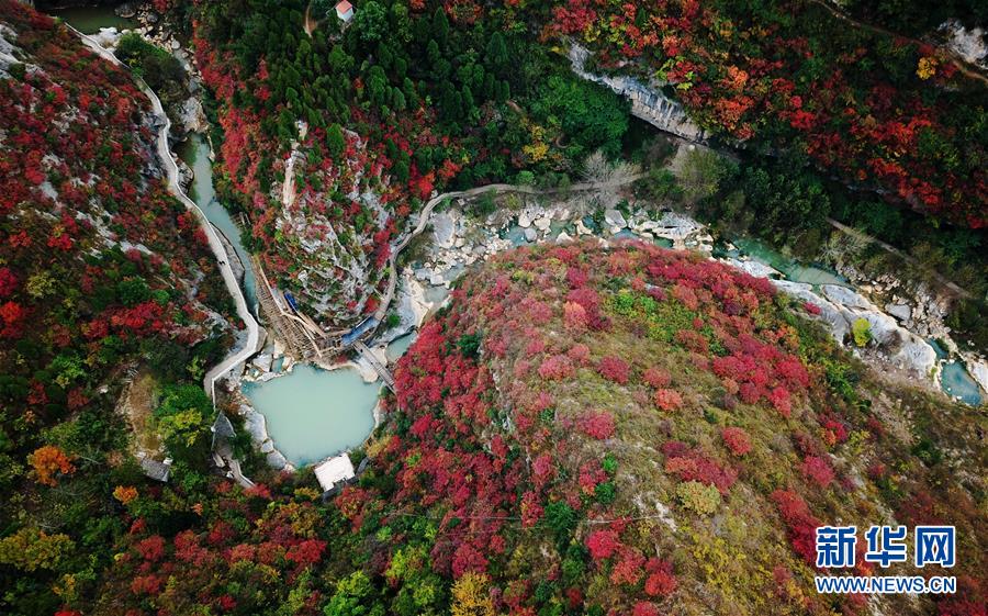 這是西狹頌景區(qū)秋景(10月16日無(wú)人機(jī)拍攝)。