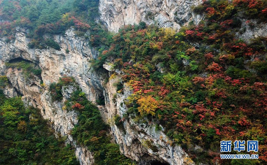 這是西狹頌景區(qū)秋景(10月16日無人機拍攝)。 新華社記者 陳斌 攝