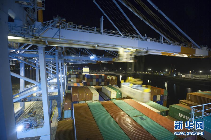 10月15日晚,吊車在比利時(shí)澤布呂赫港集裝箱碼頭進(jìn)行裝卸作業(yè)。 新華社記者 葉平凡 攝