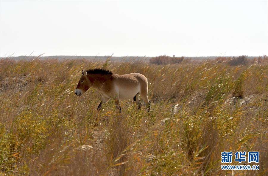 這是10月16日在敦煌西湖國家級自然保護區(qū)拍攝的普氏野馬。