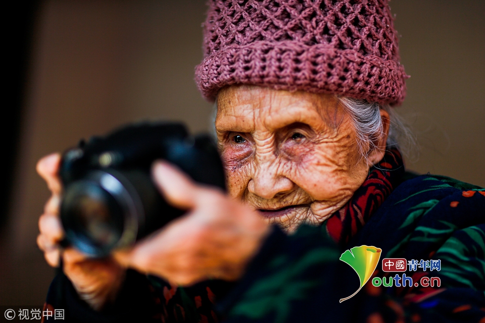 2017年03月02日,廣西壯族自治區(qū)桂林市恭城瑤族自治縣蓮花鎮(zhèn)蓮花街上,有一個慈眉善目的老人李玉珍,大家都親切地叫她“容伯娘”。她不僅是鎮(zhèn)上碩果僅存的兩位百歲老人之一,還是鎮(zhèn)上那個最老照相館的攝影師。老人拿起數(shù)碼相機拍攝照片的眼神依舊犀利。圖片作者:游擁軍/視覺中國