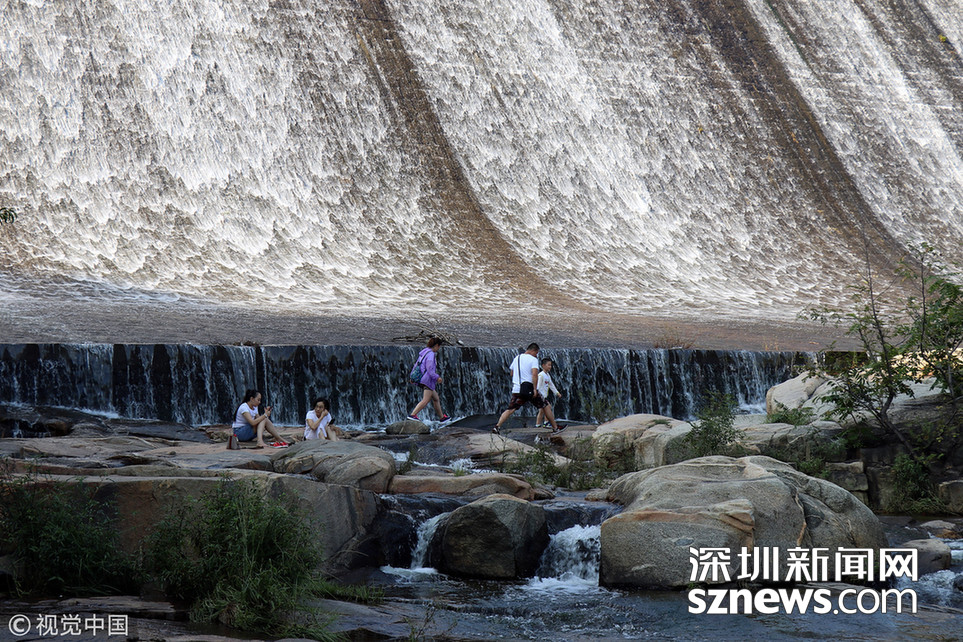 深圳新聞網(wǎng)訊 暴雨過后,泰山西溪百丈崖,瀑布猶如玉龍,宛如白雪,從崖巔凌空而降,不少市民及游客駐足壯觀的瀑布前,流連忘返。
