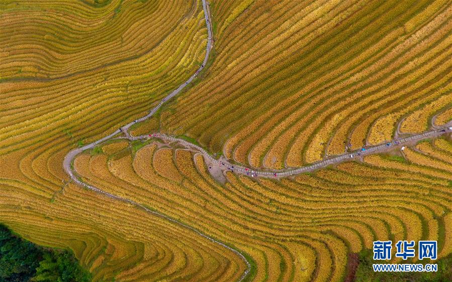 這是10月16日無(wú)人機(jī)拍攝的龍脊梯田秋色。金秋時(shí)節(jié),廣西龍勝各族自治縣龍脊梯田美如畫(huà)卷。 新華社記者 黃孝邦 攝