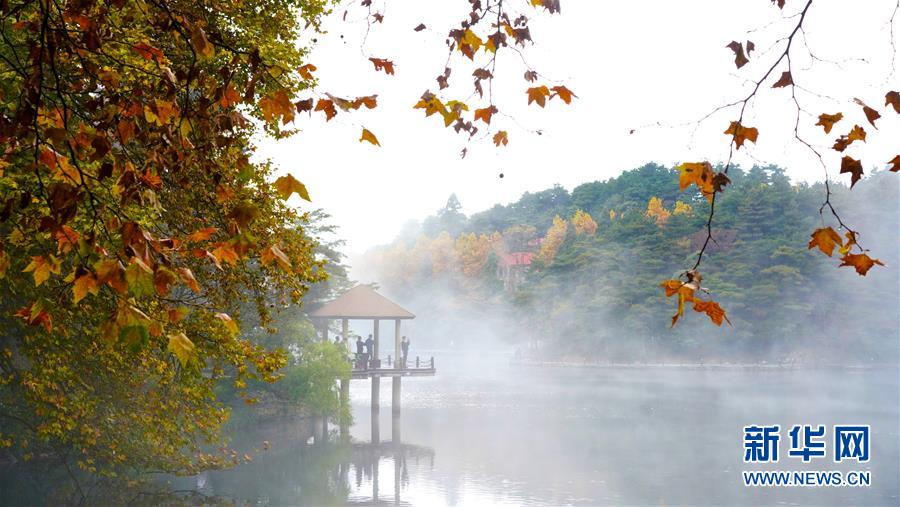游客在九江市廬山風(fēng)景區(qū)內(nèi)的如琴湖旁參觀游玩(10月20日攝)。 新華社記者 胡晨歡 攝