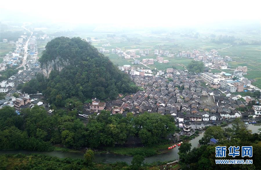 廣西富川瑤族自治縣朝東鎮(zhèn)秀水村連片民居(10月19日無人機拍攝)?!⌒氯A社記者 周華 攝