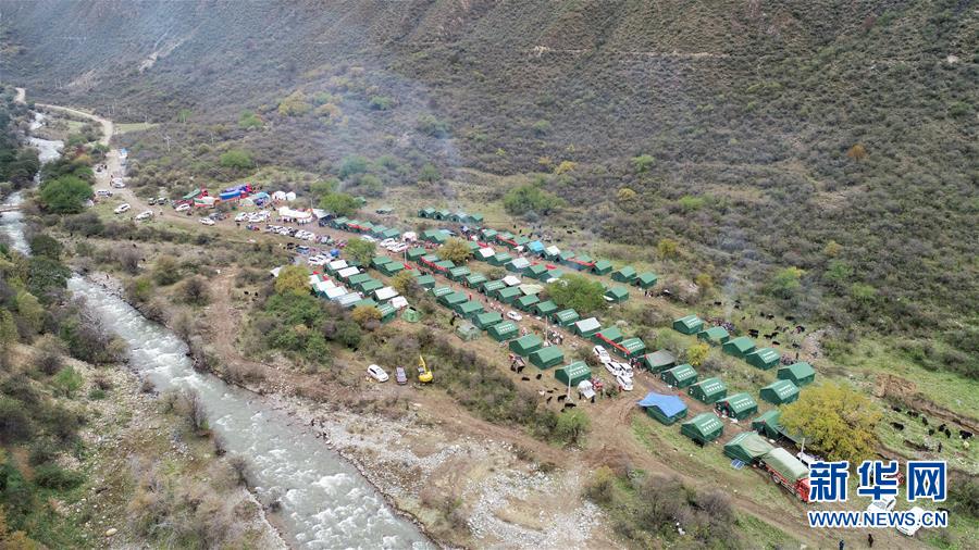 10月19日拍攝的在米林縣派鎮(zhèn)尼定村搭建的安置點(diǎn)。 記者從西藏自治區(qū)林芝加拉村雅魯藏布江堰塞湖災(zāi)情應(yīng)急搶險(xiǎn)工作第二場(chǎng)新聞發(fā)布會(huì)上獲悉,19日13時(shí)30分,雅魯藏布江米林縣堰塞體上游水位超過(guò)堰塞體,開(kāi)始自然過(guò)流,上游水位正在緩慢下降。目前,各項(xiàng)搶險(xiǎn)救援工作正在有序開(kāi)展。 新華社記者 覺(jué)果 攝