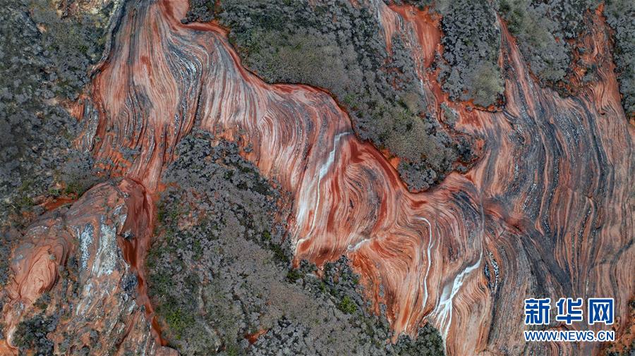 10月21日無(wú)人機(jī)拍攝的王家灣丹霞地貌。 新華社記者陶明攝