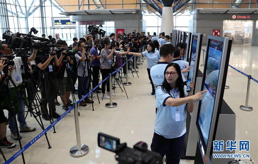 10月19日,媒體記者在香港口岸旅檢大樓參觀。 港珠澳大橋開通在即。 新華社記者 李鋼 攝