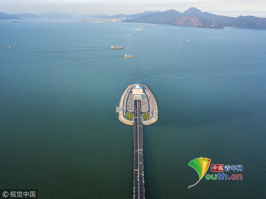 “超級工程”港珠澳大橋?qū)⒂?4日上午9時正式通車,一波美圖先睹為快。黃昆震 攝 圖片來源:視覺中國
