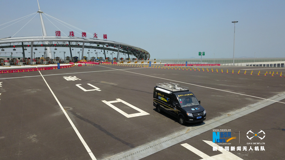 這是港珠澳大橋收費廣場(10月20日無人機拍攝)。