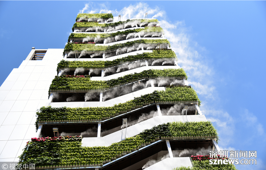 深圳新聞網(wǎng)訊 2018年6月10日,西安,高樓外長滿綠植,還縈繞著霧氣。這段只有6秒的短視頻在抖音火了,網(wǎng)友評論這是“第四代住房”,其實(shí)這是西安市眾創(chuàng)示范街區(qū)的一處安裝了智能霧森系統(tǒng)的西北最大戶外垂直綠化。