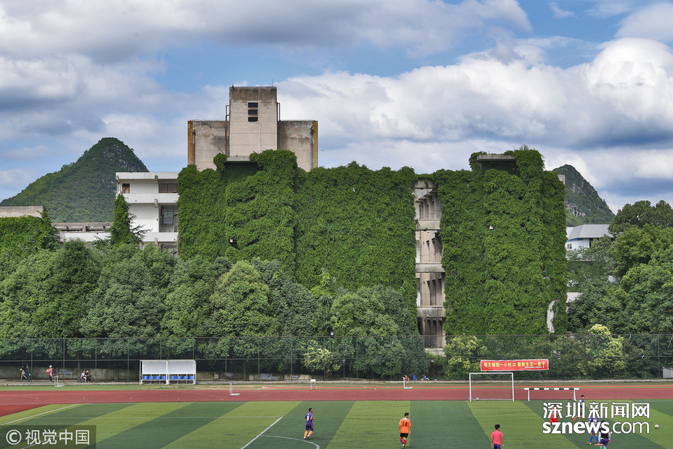 深圳新聞網(wǎng)訊 2018年6月20日,貴陽,貴州大學(xué)現(xiàn)12層樓近50米高綠色“巨瀑”。據(jù)悉,這是該校的老師們在26年前栽種的300多棵爬山虎,如今爬滿12層高的圖書館大樓,猶如“綠色城堡”。