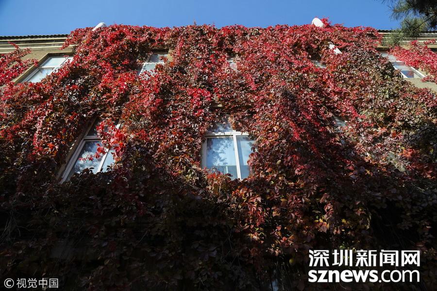 深圳新聞網(wǎng)訊 2017年10月21日,沈陽,懷遠(yuǎn)樓北側(cè)的墻面也是被爬墻虎所覆蓋,由于陽光很少能照射到植被,所以爬墻虎大都還是綠色。