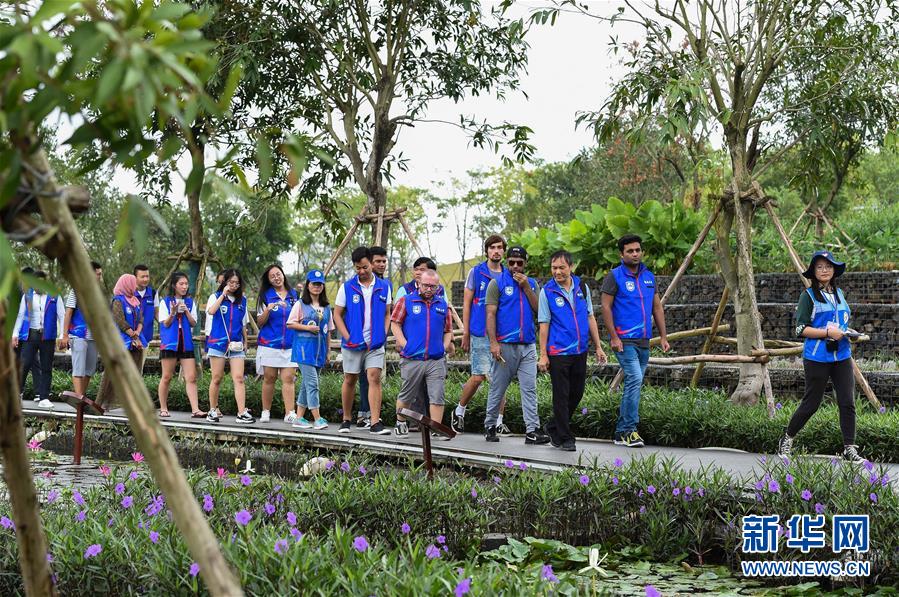 在海口市美舍河鳳翔濕地公園,參加濕地保護(hù)志愿服務(wù)講解員培訓(xùn)的留學(xué)生志愿者一邊參觀一邊聽(tīng)中國(guó)志愿者講解(10月21日攝)。 海口市鳳翔濕地公園內(nèi)流水潺潺,綠草如茵。很難想象,這個(gè)市民游客休閑散步的好去處、具有強(qiáng)大污水凈化功能的濕地公園,兩年前還是臭氣熏天、人們避之不及的垃圾堆填場(chǎng)。 把生態(tài)文明建設(shè)放到更加突出的位置,近兩年來(lái)??谑幸詽竦爻鞘薪ㄔO(shè)為突破口,不斷創(chuàng)新城市生態(tài)治理,著力改善生態(tài)民生,在生態(tài)文明建設(shè)上闖關(guān)探路。 新華社記者 楊冠宇 攝