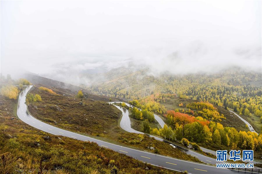 這是通往新疆喀納斯景區(qū)禾木村的道路(2017年9月23日攝)。 新華社記者 趙戈 攝