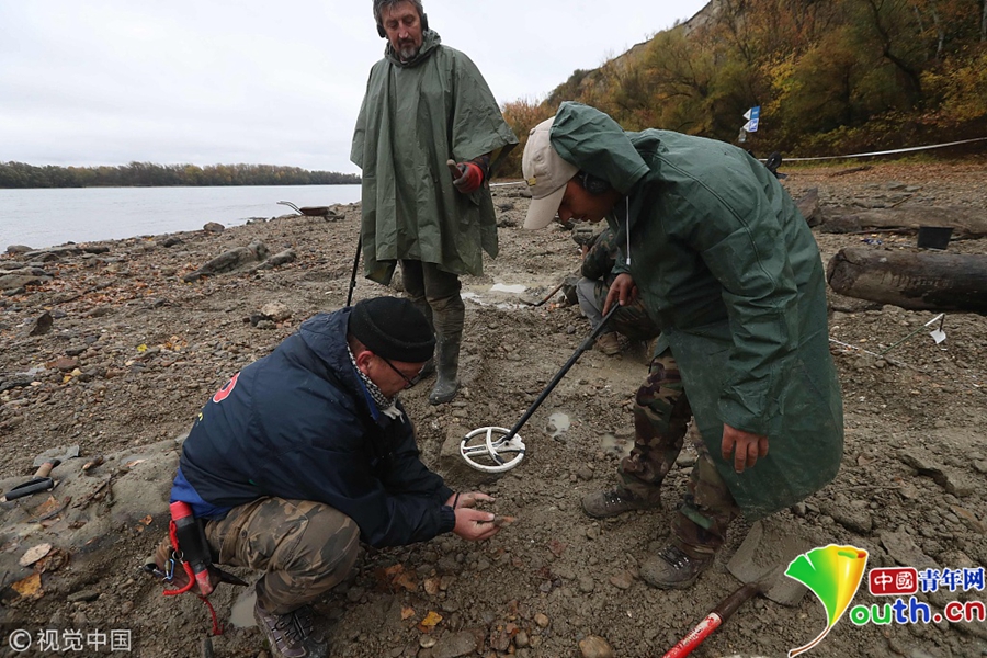 多瑙河水位下降現(xiàn)“寶藏” 考古人員發(fā)掘出大批古錢(qián)幣