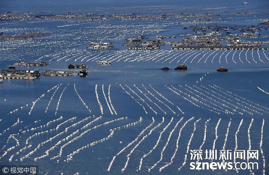 深圳新聞網(wǎng)訊  2018年10月26日,在福建連江海域上,“海上田園”網(wǎng)箱羅列,漁排上搭建的木屋錯(cuò)落成“戶”,蔚為壯觀,成為一道獨(dú)特的風(fēng)景線。福建省連江縣是中國(guó)鮑魚養(yǎng)殖第一大縣。