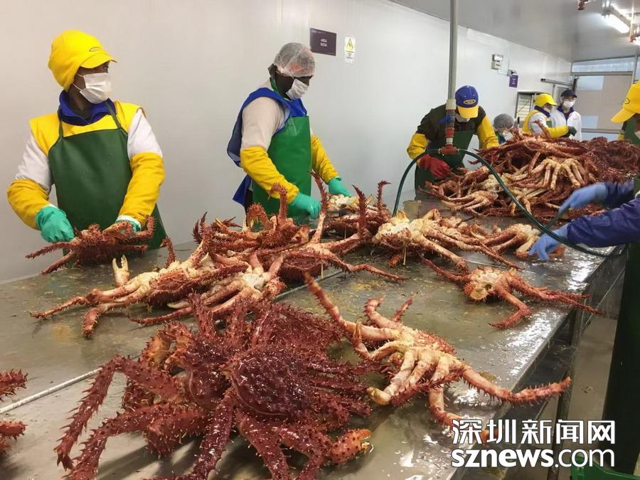 智力蜘蛛蟹加工基地, 產(chǎn)于南極洲海域。 李仁奇 攝