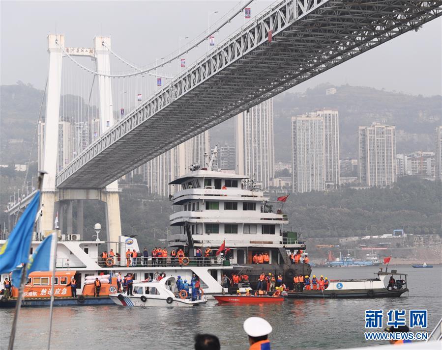 這是10月29日拍攝的重慶萬州公交車墜江事故救援現(xiàn)場。 新華社記者 王全超 攝