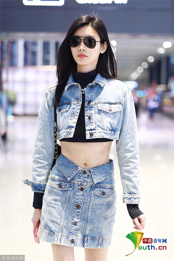 奚夢瑤一身帥氣牛仔裝 露細(xì)腰長腿顯 ...