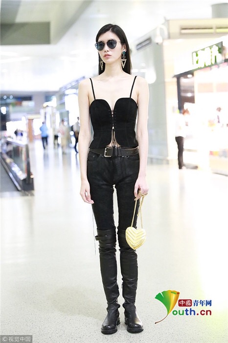 2018年7月25日,上海,奚夢瑤現(xiàn)身機場,她穿吊帶馬甲配過膝長靴,頻撩發(fā)似女特工。