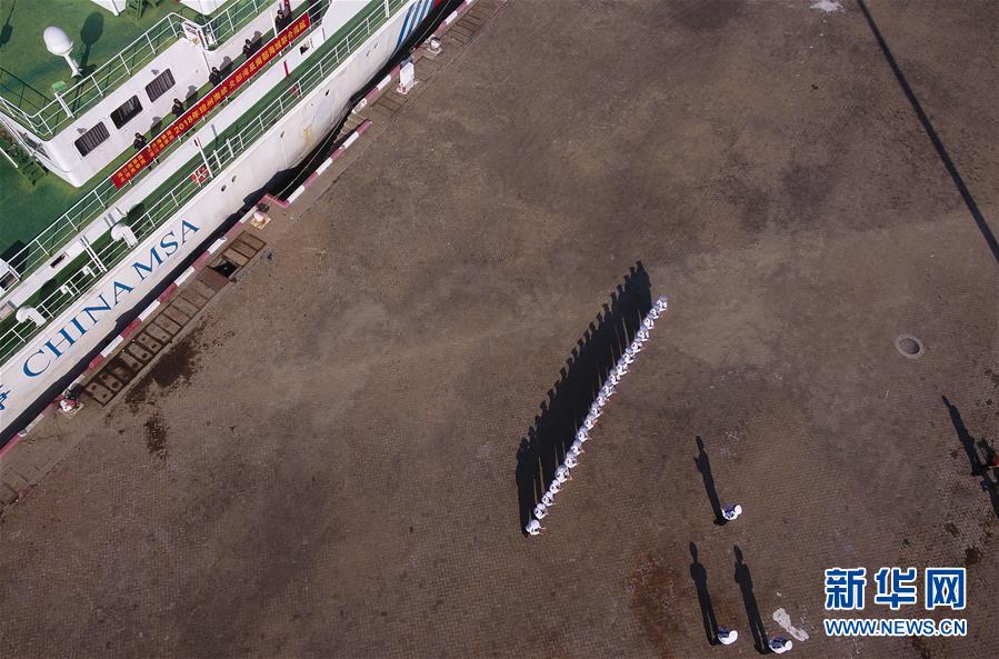 11月3日,海事執(zhí)法人員準(zhǔn)備登上“海巡21”輪(無人機拍攝)。當(dāng)日,隨著“海巡21”輪緩緩駛離??诤J卤O(jiān)管基地碼頭,由瓊桂粵海事部門共同開展的瓊州海峽、北部灣及環(huán)海南島水域跨轄區(qū)聯(lián)合巡航執(zhí)法活動揭開序幕。新華社記者楊冠宇攝