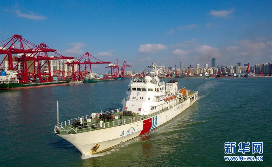 11月3日,“海巡21”輪駛出港口。當(dāng)日,隨著“海巡21”輪緩緩駛離海口海事監(jiān)管基地碼頭,由瓊桂粵海事部門共同開展的瓊州海峽、北部灣及環(huán)海南島水域跨轄區(qū)聯(lián)合巡航執(zhí)法活動揭開序幕。新華社記者楊冠宇攝