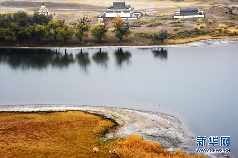 巴丹吉林廟位于名為“廟海子”的湖泊旁(10月19日攝)。巴丹吉林沙漠位于內(nèi)蒙古西部阿拉善盟,是中國(guó)第三大沙漠,沙丘起伏的曲線陡變成高聳的沙山,碧藍(lán)的湖泊散落在沙海間。新華社記者李仁虎攝